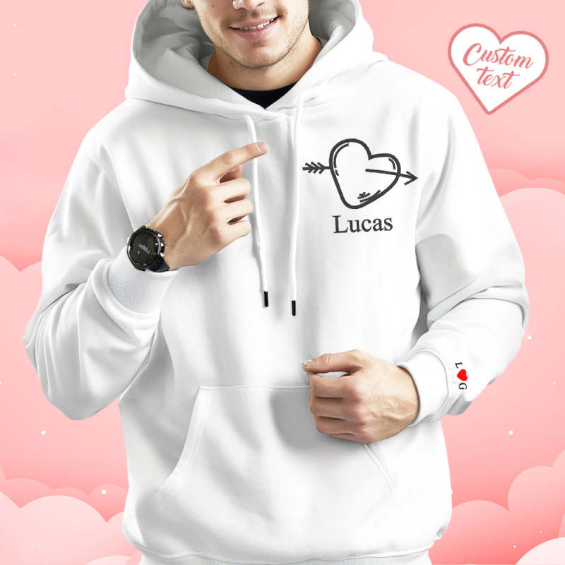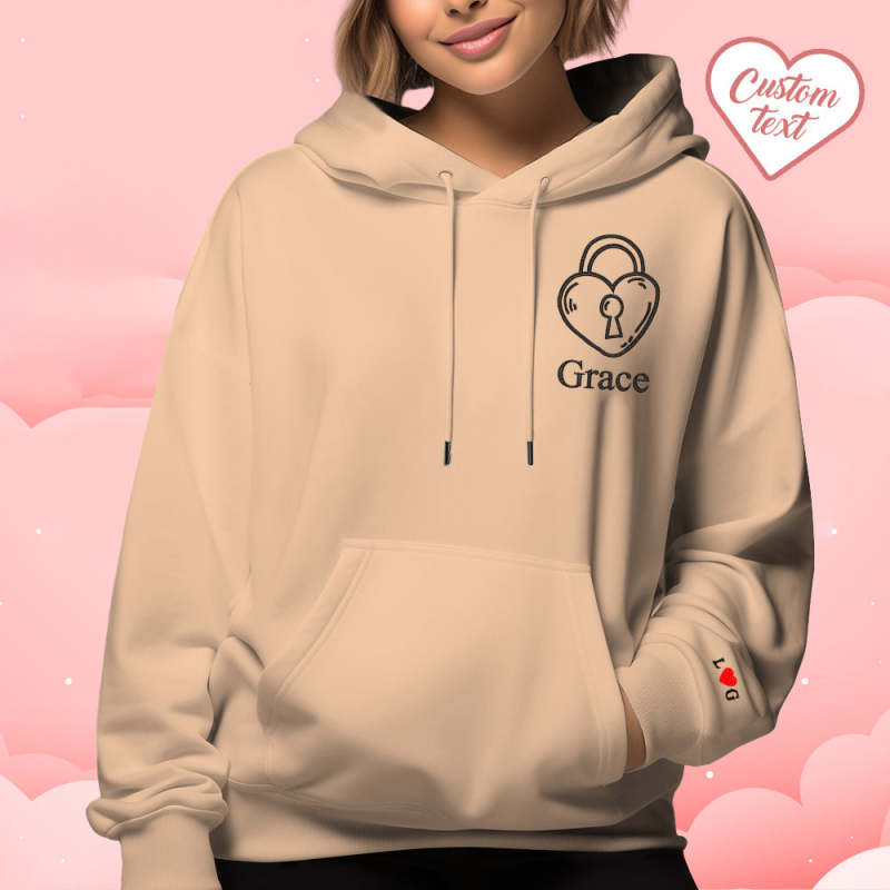 Custom Text Embroidered Hoodie Unique Heart Key And Lock Match Set Couple Sweatshirt