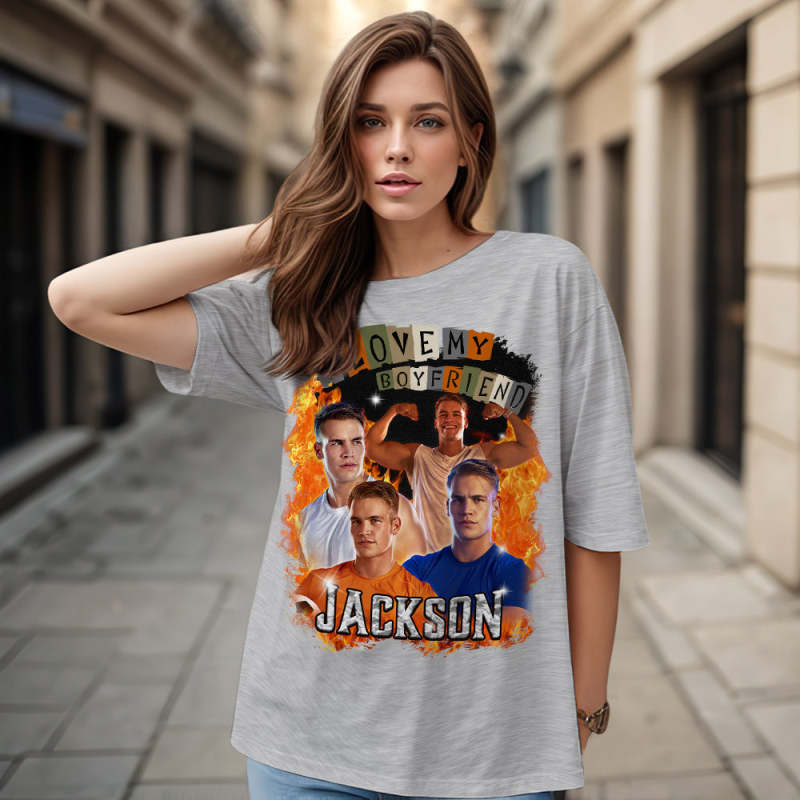 Custom Vintage Tee I Love My Boyfriend Shirt Personalised Name Shirt With Photo