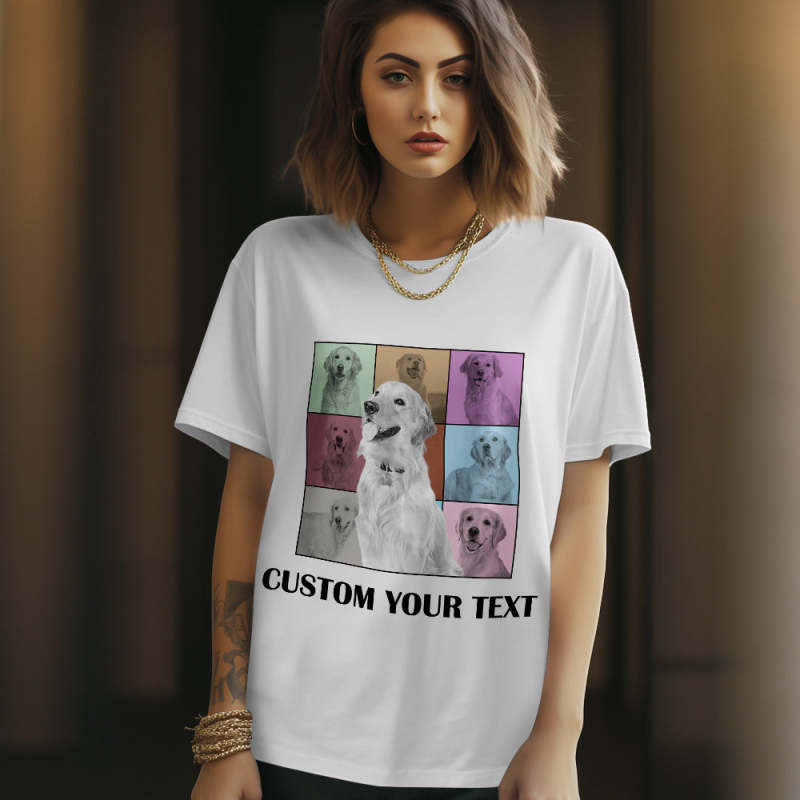 Custom Your Photo and Text Shirt Personalised Dog Photo Shirt Custom Multi Pet Portrait Shirt