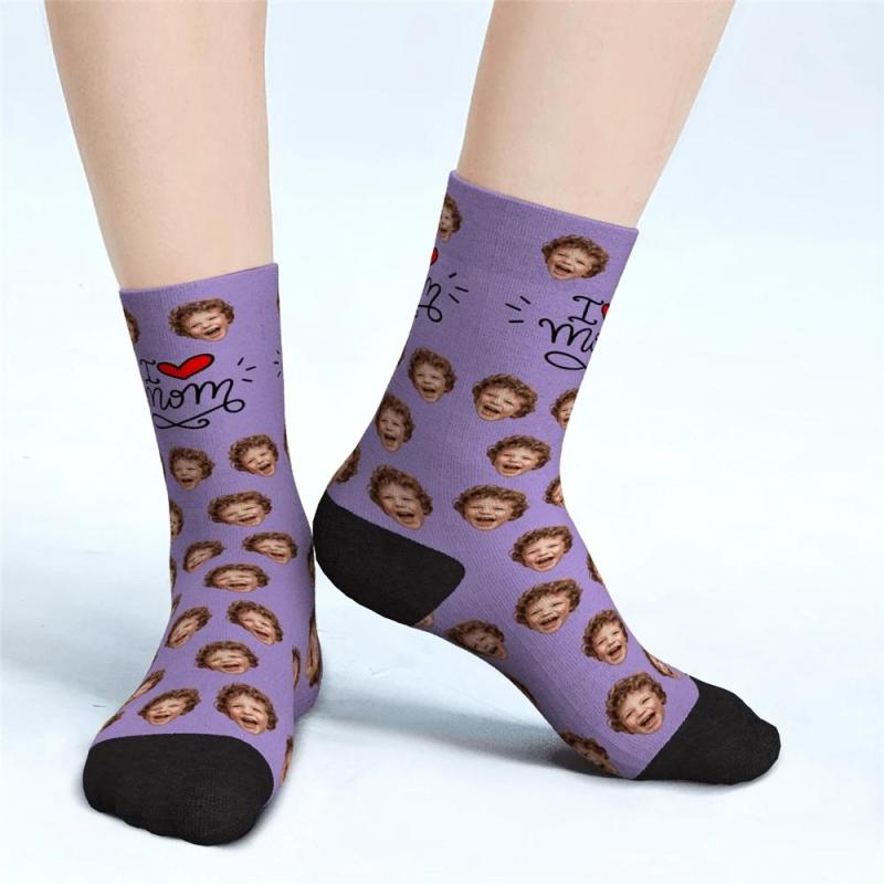 I Love Mom Custom Face Socks Mother's Day Gifts - Unisex