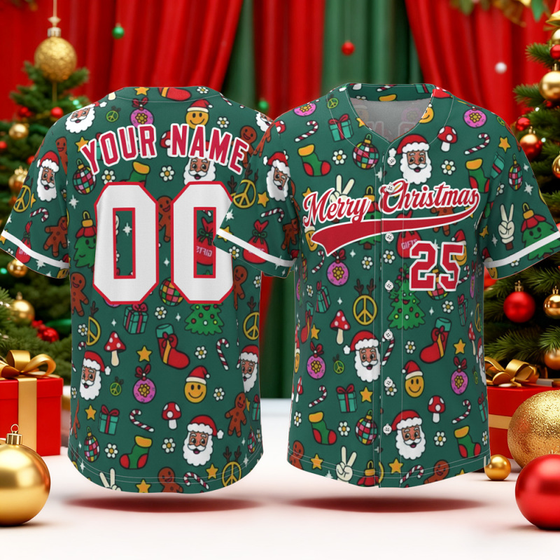 Personalized Elf Baseball Jersey with Your Name & Number Christmas Theme Shirt Santa Cartoon Baseball Shirt
