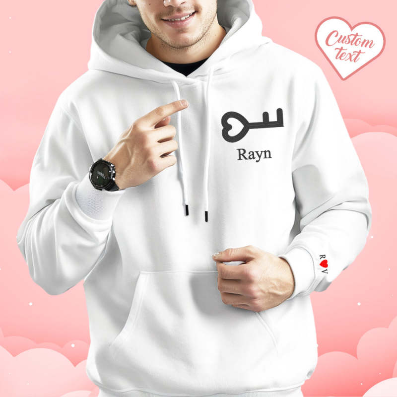 Personalized Text Embroidered Hoodie Meaningful Heart Key And Lock Set Couple Sweatshirt