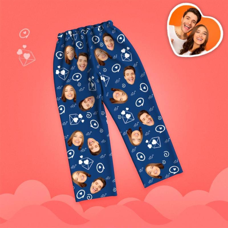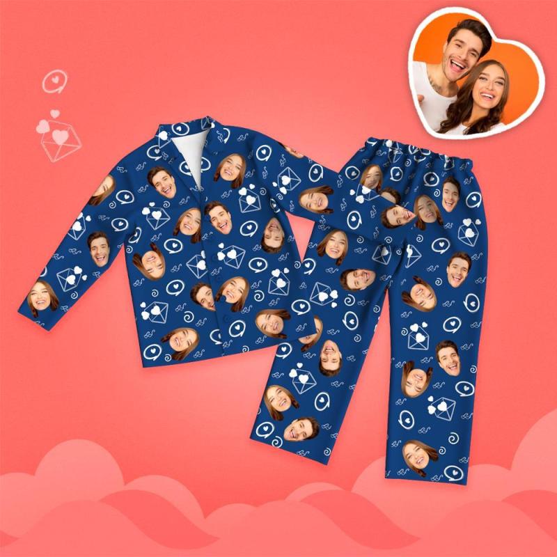 Custom Face Love And Message Printed Long Sleeve Pajamas