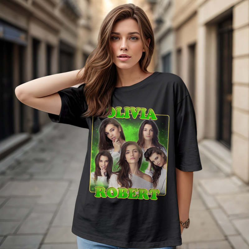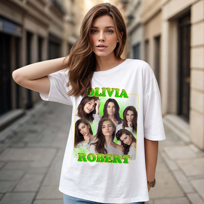 Custom 90s Bootleg Vintage Rap T Shirt Personalised Name And Photo T-shirt