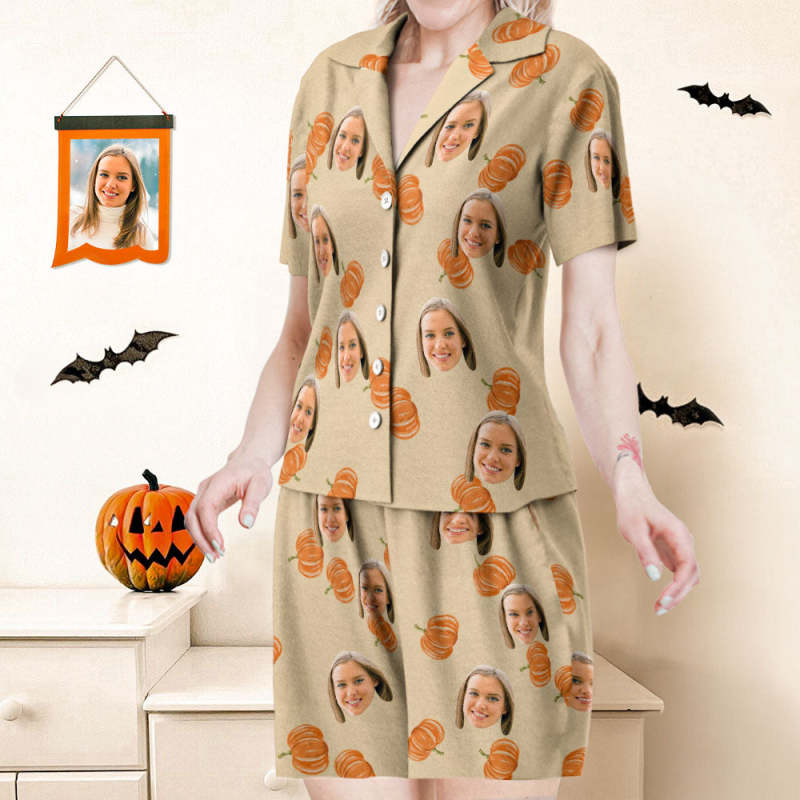 Custom Face Short Sleeved Pajamas Personalised Women's Sleepwear Hallowen Gifts For Her