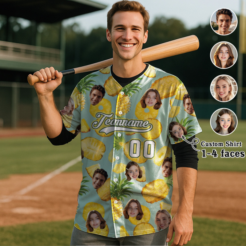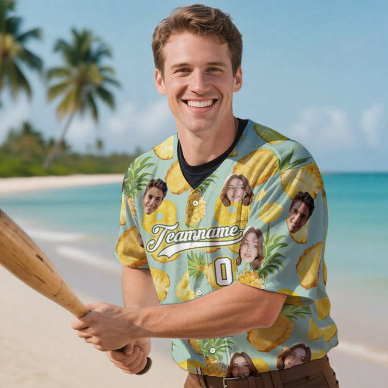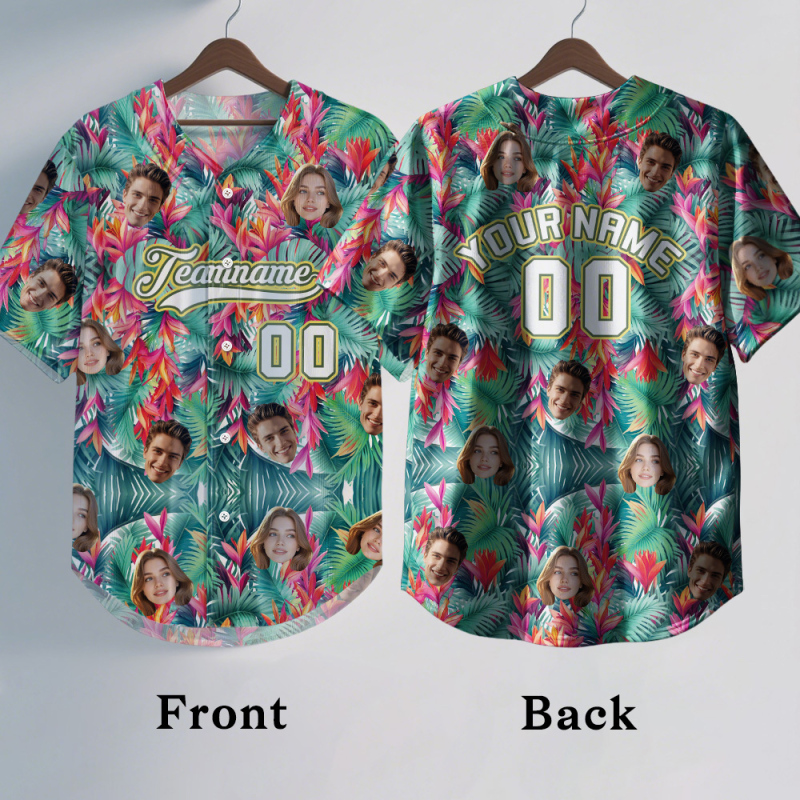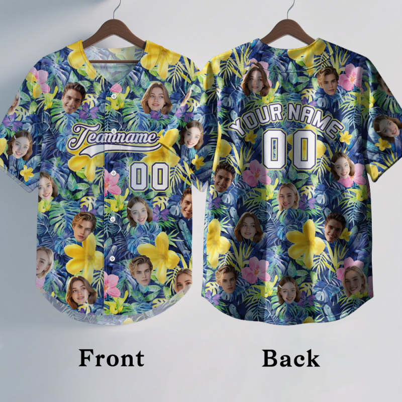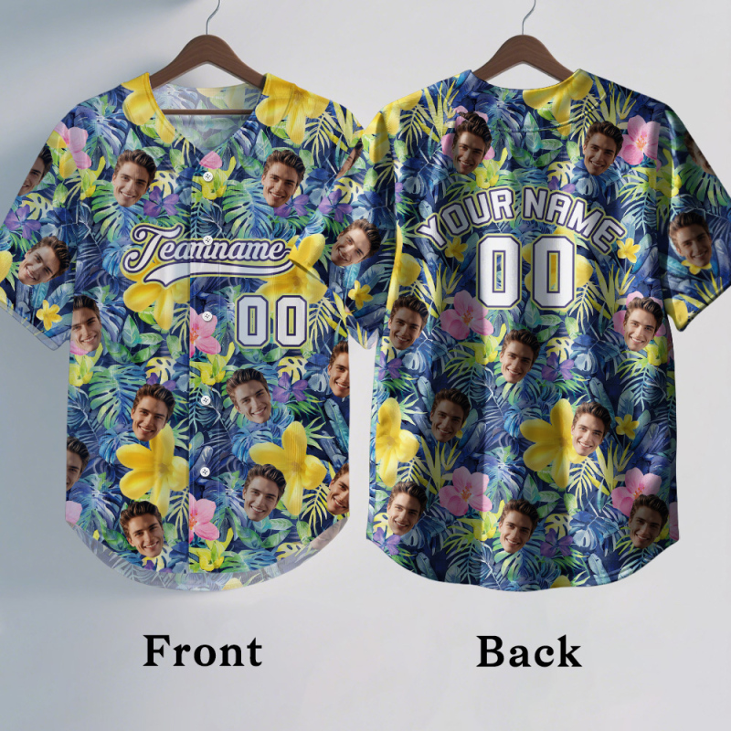 - Custom hawaiian Baseball Jersey shirts face all over print aloha beach shirt for men