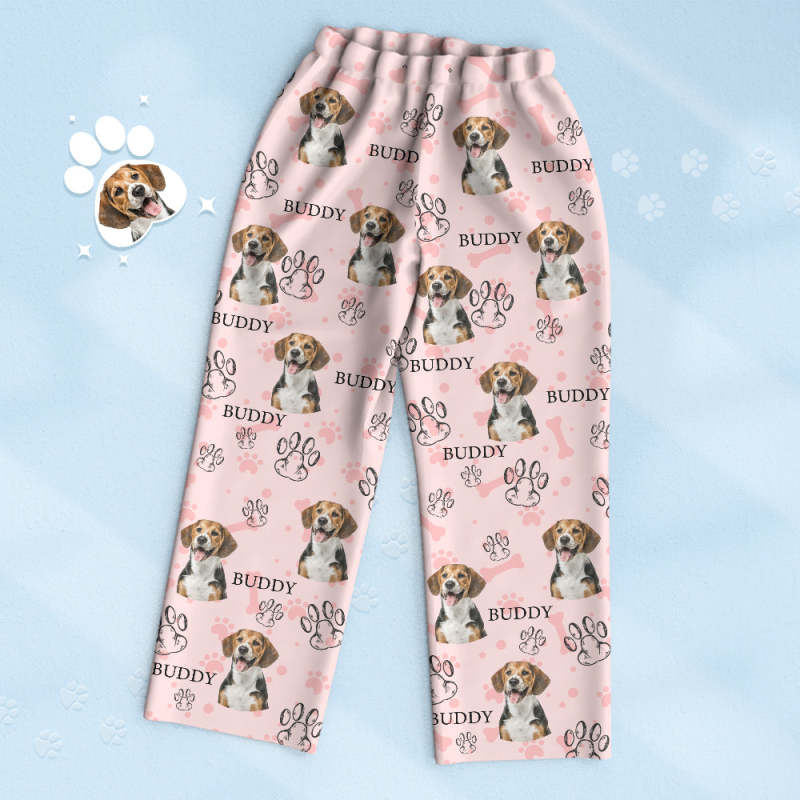 Custom Photo Dog Pajama Pants Cat Paw For Dog Cat Lover Personalised Photo Women Men Multiple Color Pajama