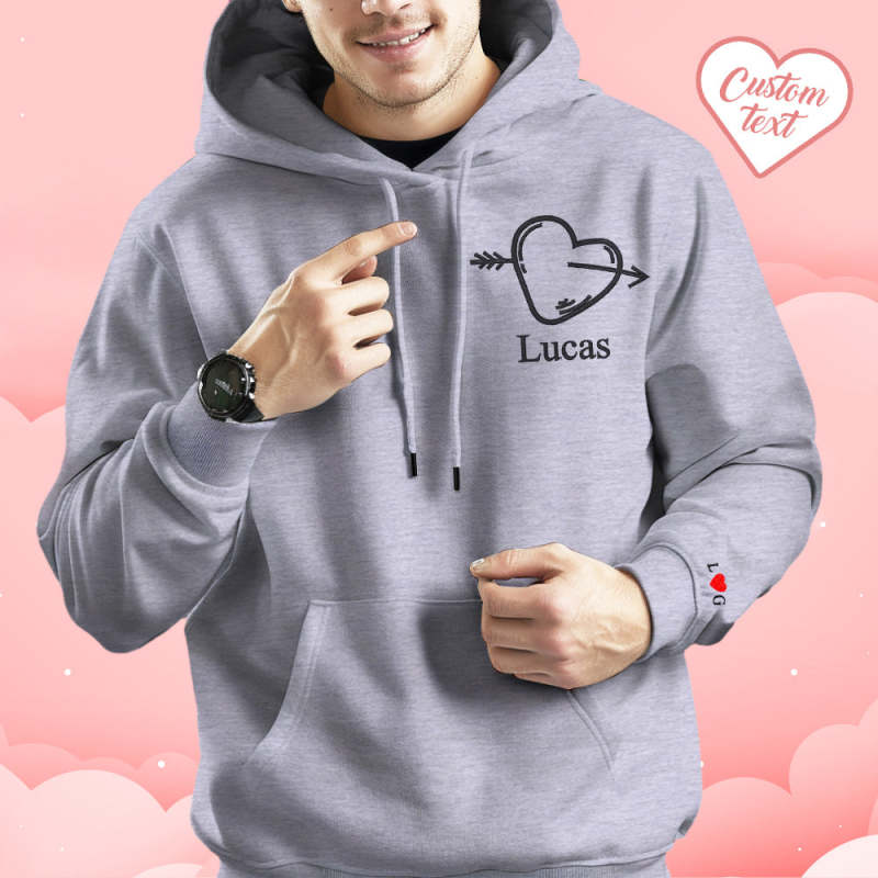 Custom Text Embroidered Hoodie Stylish Heart Key And Lock Set Sweatshirt Valentine Gift For Couples