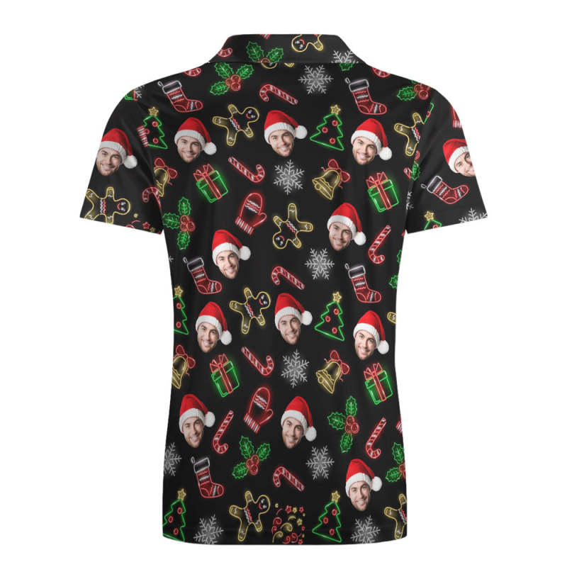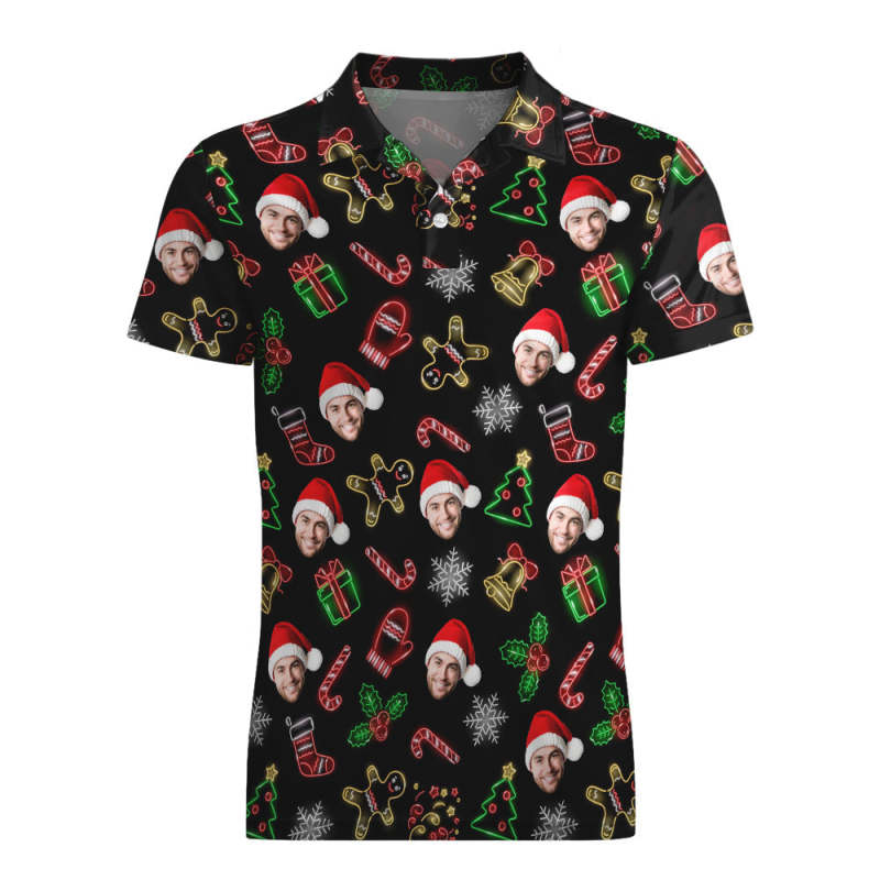 Men's Custom Face Christmas Neon Polo Shirt Personalised Short Sleeve Golf Shirts Gift
